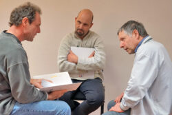 die Teilnehmer spielen abwechselnd misstrauische Mitarbeiter und ruhig führenden Chef.