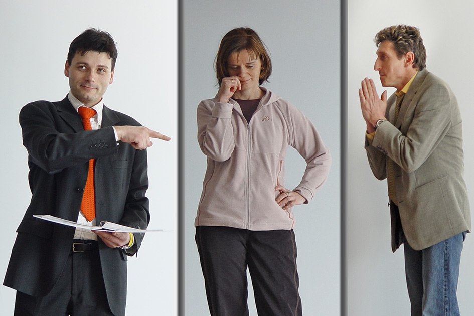 Ein Teilnehmer übt, die Wichtigkeit seiner Aussage nonverbal darzustellen.