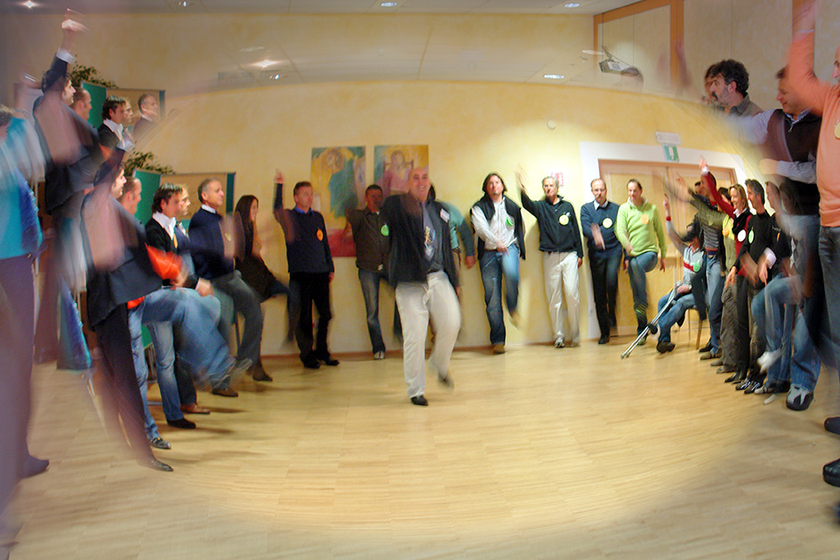 Bild: BrainGym-Übung zur Energiemobilisierung mit Spaß und Freude! Schnappschuss aus einem unserer Trainings mit Großgruppen
