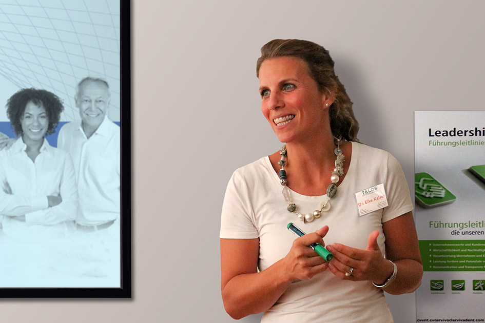 Bild: Energie richtig eingesetzt bringt Erfolg! Eine TELOS-Referentin bei einem Vortrag. Foto: TELOS