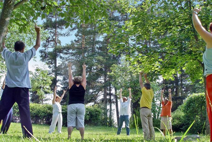 6) So stehen Sie nun aufrecht da, locker und mit innerer Weite.