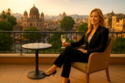 Urlaub Businessfrau lächeln Hotelterrasse Indien / Bild: TI2509056150b